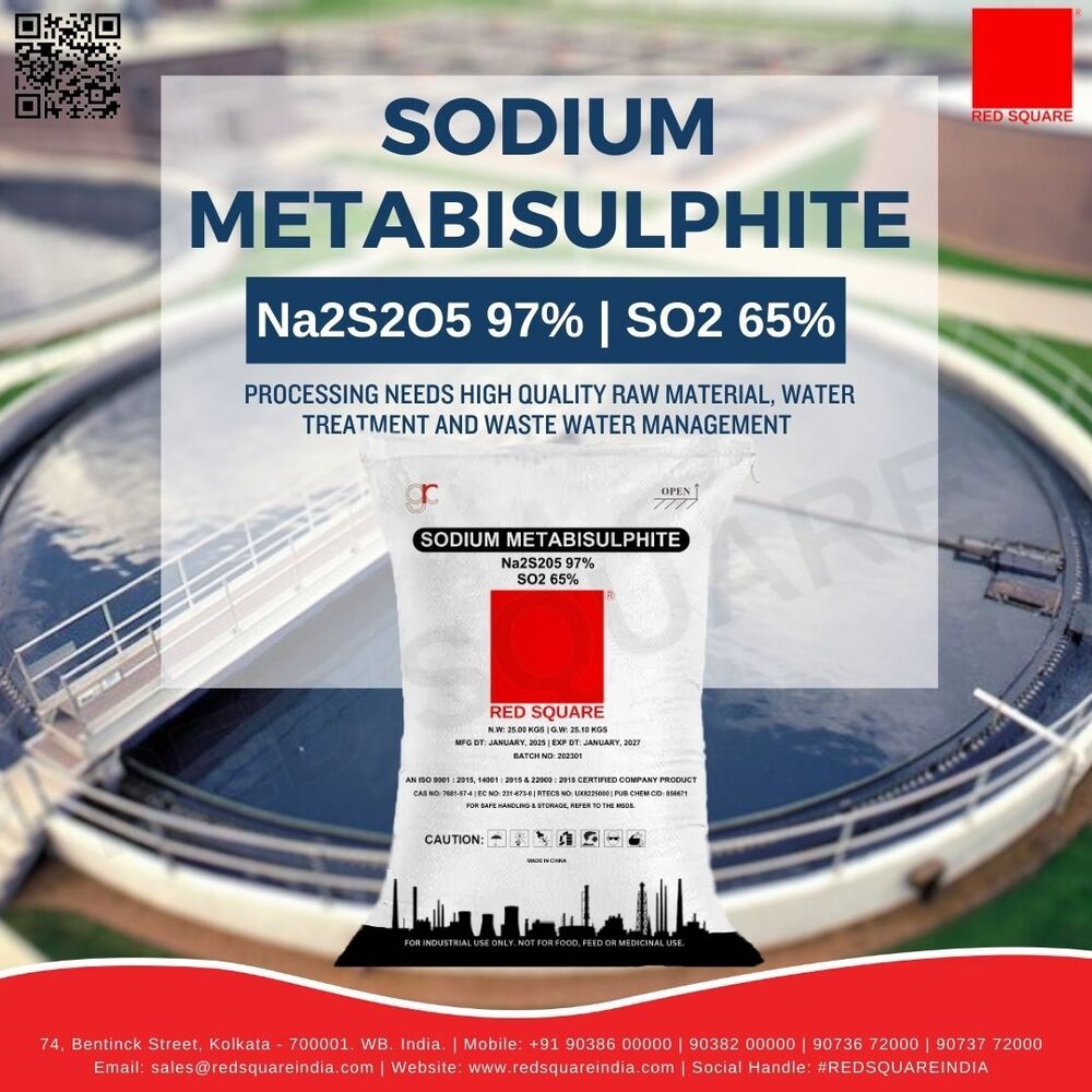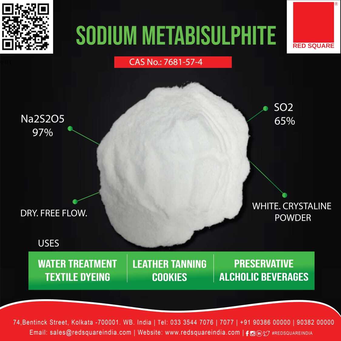 Sodium Metabisulphite(SMBS), white/creamy in color & with a pungent sulphur odour and dissolvable in water. The chemical formula for it is Na2S2O5, an inorganic compound made up of sodium, sulfur and oxygen, and used in many industries such as Food, Leather, Textile, Mining, Water Treatment, Construction Chemicals and Paper.